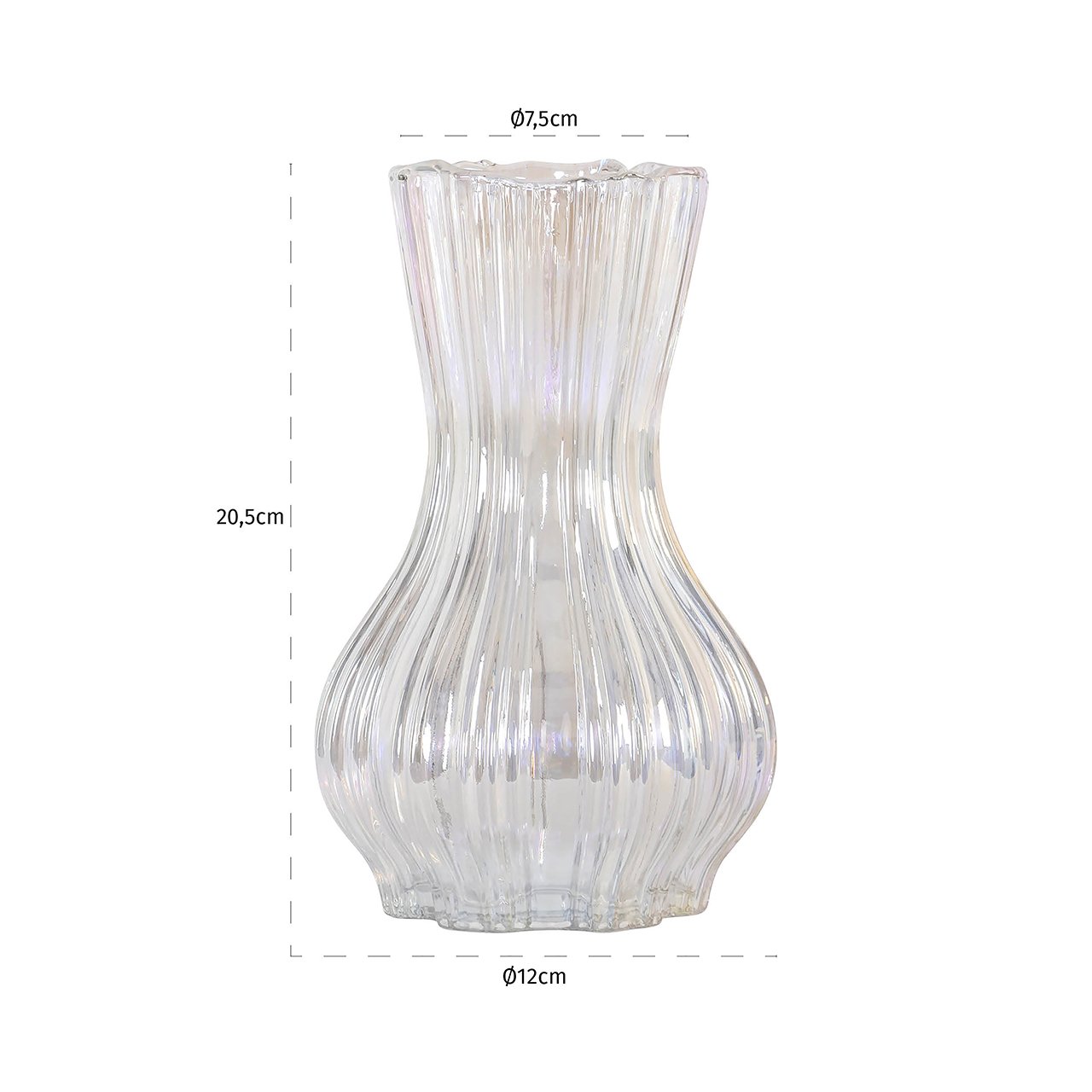 Voeg een vleugje elegantie toe aan je interieur met de Vaas Cracy small (Iridescent) uit de Richmond Decoration collectie. Deze verfijnde vaas, met zijn iriserende glans, transformeert elke ruimte in een oogwenkend kunstwerk. Gemaakt van hoogwaardig glas en metaal, straalt hij luxe uit en is tegelijkertijd duurzaam. Met een hoogte van 20,5 cm en een gewicht van 3,3 kg, is deze vaas perfect voor zowel grote als kleine bloemstukken. De unieke iridescente kleur vangt het licht prachtig, waardoor een betoverend effect ontstaat. De Vaas Cracy small is een schitterende aanvulling voor elke stijlvol ingerichte kamer en een must-have voor liefhebbers van design.