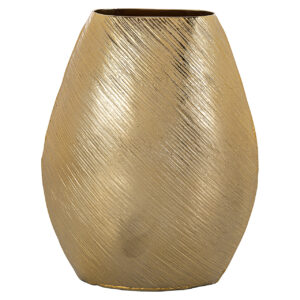 Voeg een vleugje elegantie toe aan je interieur met de Vaas Evey klein in Gold. Deze vaas uit de Richmond Decoration collectie is een ware blikvanger dankzij zijn prachtige gouden afwerking en unieke textuur. Met zijn afmetingen van 30,5 x 24,0 x 12,5 cm en een gewicht van 1,6 kg, is hij perfect voor op een bijzettafel of vensterbank. De Vaas Evey klein is vervaardigd uit robuust aluminium, waardoor hij zowel stijlvol als duurzaam is. Creëer een luxueuze sfeer in je woonkamer en geniet van de subtiele glamour die deze gouden vaas met zich meebrengt.