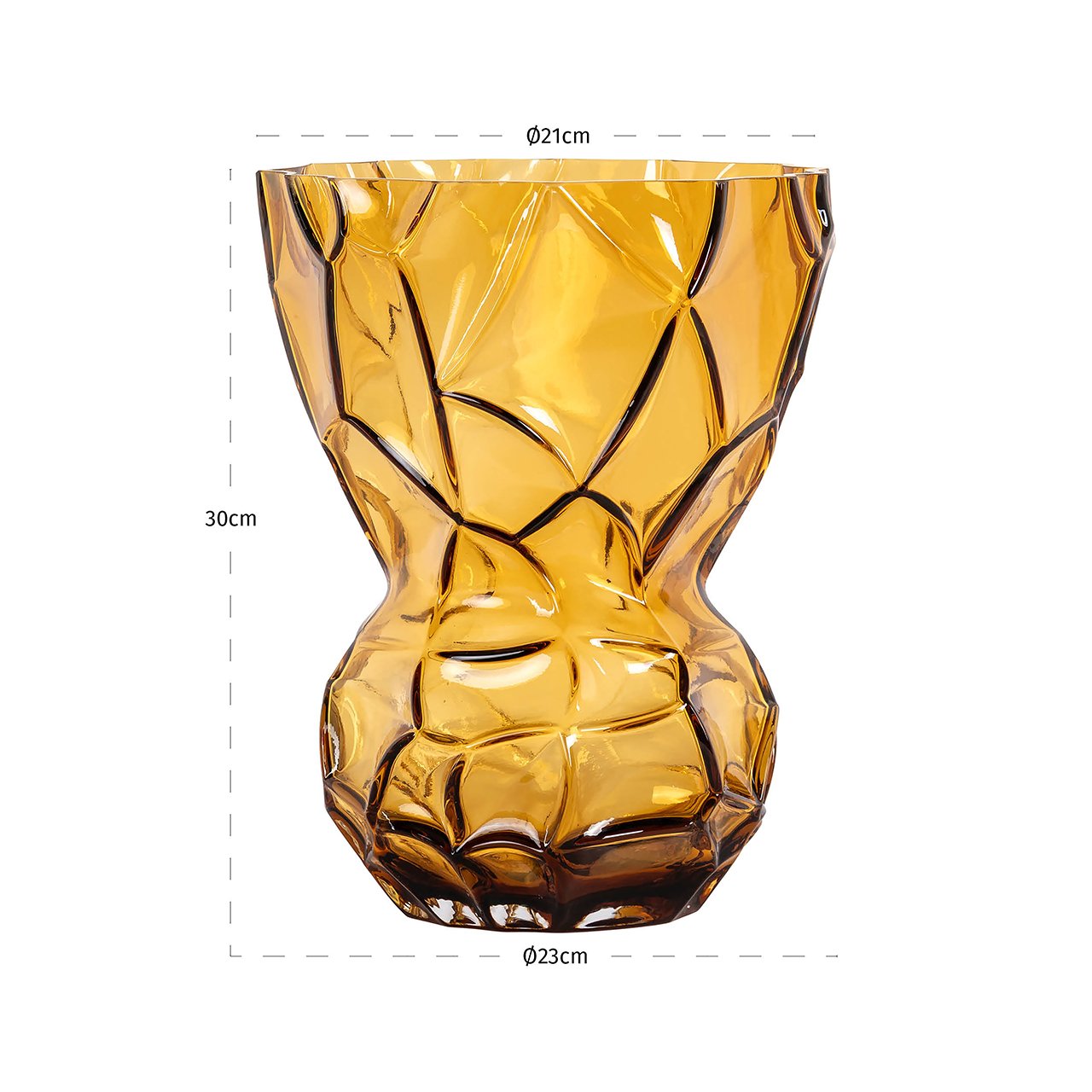 Voeg een vleugje elegantie toe aan je interieur met de Vaas Mason groot in Amber. Deze indrukwekkende vaas van Richmond Decoration trekt direct de aandacht met zijn unieke glazen design en warme amberkleur. Met een hoogte van 30 cm en een breedte van 23 cm is deze vaas ideaal voor het tentoonstellen van je favoriete bloemen of als op zichzelf staand kunstwerk. Het duurzame glas en het verfijnde ontwerp maken het een tijdloze toevoeging aan elke ruimte. Kies voor de Vaas Mason groot en transformeer je woonruimte met stijlvolle charme.