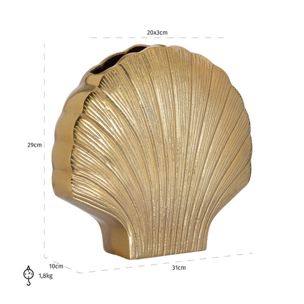 Voeg een vleugje elegantie toe aan je interieur met de Vaas Noé groot uit de Richmond Decoration collectie. Deze opvallende vaas, gemaakt van hoogwaardig aluminium, straalt luxe uit met zijn unieke vorm en gouden afwerking. Met afmetingen van 29,5 x 30,5 x 9,0 cm en een gewicht van 2,7 kg, is het een robuuste toevoeging die elke ruimte verfraait. Perfect voor zowel moderne als klassieke interieurs, trekt deze vaas alle aandacht naar zich toe. Laat je creativiteit de vrije loop en vul hem met prachtige bloemen of laat hem op zichzelf schitteren. Een must-have die stijl en verfijning aan je woonruimte toevoegt.