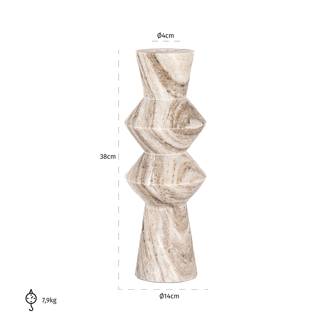 Ontdek de elegante Vaas Siem in beige, een meesterwerk uit de Richmond Decoration collectie. Deze vaas, vervaardigd uit hoogwaardig marmer, voegt een vleugje verfijning toe aan elk interieur. Met zijn afmetingen van 38 x 14 cm en een gewicht van 9,24 kg, is hij zowel robuust als stijlvol. De natuurlijke beige tinten en unieke vormgeving maken deze vaas een echte blikvanger. Perfect voor op een dressoir of als middelpunt op uw eettafel. Laat uw bloemen stralen of geniet van de tijdloze schoonheid van de Vaas Siem zelf. Voeg nu een vleugje luxe toe aan uw huis!