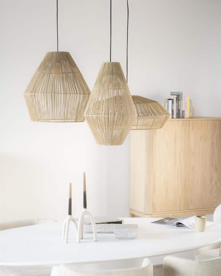 Breng een vleugje natuurlijke elegantie in je interieur met de Aya 2 – natural hanglamp. Met een verfijnde afwerking van polyester en metaal voegt deze lamp een warme en uitnodigende sfeer toe aan elke ruimte. De afmetingen van 34x34x52 cm maken het een opvallend stuk, terwijl het 130 cm lange snoer flexibiliteit biedt voor diverse plafondhoogtes. De Aya 2 is eenvoudig te onderhouden door regelmatig te stofzuigen, waardoor hij altijd straalt als nieuw. Dit duurzame ontwerp is perfect voor wie stijl en functionaliteit wil combineren in zijn woonruimte. Creëer een harmonieuze ambiance met de tijdloze charme van de Aya 2 – natural.