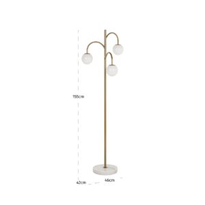 Geef je interieur een vleugje elegantie met de Vloerlamp Janou in goud. Deze prachtige lamp uit de Richmond Decoration collectie combineert stijl en functionaliteit op sublieme wijze. Met een hoogte van 153,8 cm en een stevige basis van marmer straalt Janou luxe uit. De gouden afwerking van ijzer en het glas zorgen voor een warme, verfijnde uitstraling in elke ruimte. Perfect als sfeerverlichting of als opvallend middelpunt in je woonkamer. Voeg de Vloerlamp Janou toe aan je interieur en geniet van de tijdloze charme en kwaliteit die je verdient. Ontdek hoe deze stijlvolle vloerlamp je ruimte kan transformeren.