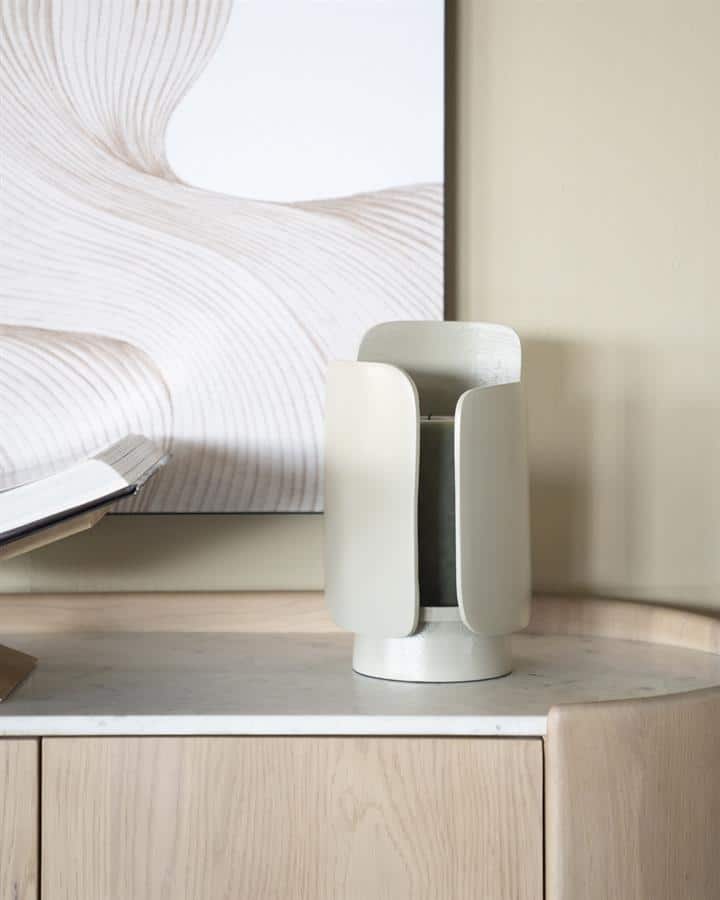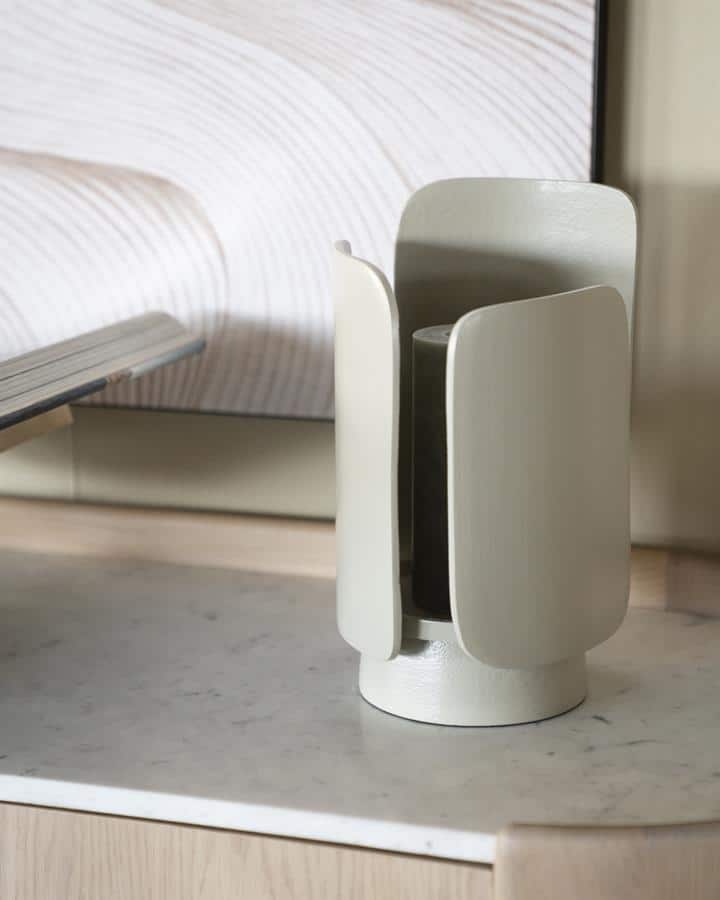 Breng stijl en functionaliteit in uw interieur met de Planes kaarshouder uit de SCAN collectie. Deze elegante accessoire, uitgevoerd in een verfijnde beige tint, heeft een strakke afwerking die perfect past in elk modern interieur. Met afmetingen van 18×18,5×31 cm en vervaardigd uit duurzaam aluminium, biedt het een robuuste maar verfijnde uitstraling. De gecoate afwerking zorgt voor een langdurige glans en maakt onderhoud eenvoudig: een vochtige of droge doek volstaat. Met een gewicht van slechts 2,1 kg is de Planes makkelijk te verplaatsen, zodat u altijd de juiste sfeer kunt creëren. Voeg een vleugje elegantie toe aan uw woonruimte met deze tijdloze decoratie.