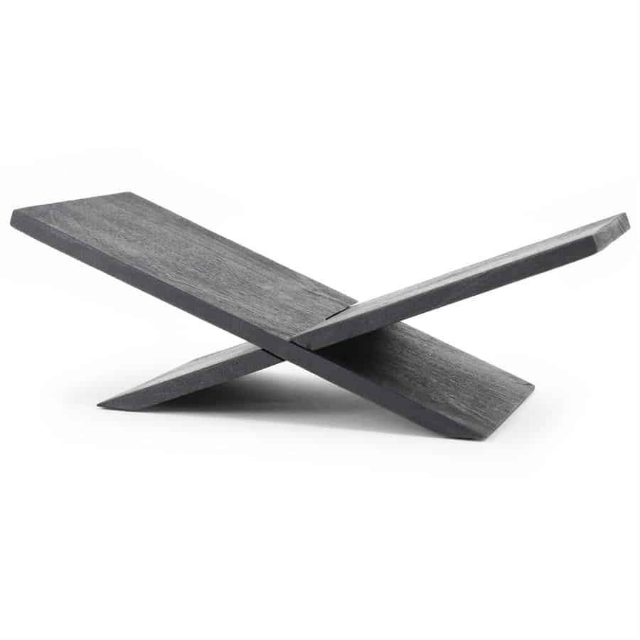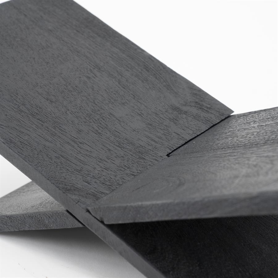 Tee – black is een minimalistisch en stijlvol woonaccessoire dat zowel functioneel als decoratief is. Deze boekenstandaard of displayhouder is vervaardigd uit massief mangohout en afgewerkt met een zwarte gezandstraalde afwerking, wat zorgt voor een robuuste en tegelijkertijd verfijnde uitstraling. Dankzij het slimme kruisvormige ontwerp biedt Tee een stabiele ondersteuning voor koffietafelboeken, kunstprints, tijdschriften of zelfs vinylhoezen.