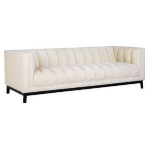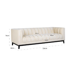 Ontdek ultiem comfort en stijl met de Bank Beaudy in white chenille. Deze elegante sofa, onderdeel van de exclusieve Sofas-collectie, combineert een verfijnde uitstraling met praktische voordelen zoals brandwerendheid. De witte chenille bekleding biedt een luxueuze textuur, terwijl de zwarte poten een modern contrast creëren. Dankzij de ruime afmetingen van 74 x 230 x 96 cm heb je voldoende plek voor ontspanning. Gemaakt van stevig grenen en multiplex, gevuld met comfortabel schuim, is deze bank een duurzame keuze voor elk interieur. Voeg een vleugje elegantie toe aan je woonkamer met de Bank Beaudy en geniet van jarenlang zitplezier. Perfect voor wie houdt van luxe en veiligheid zonder concessies.