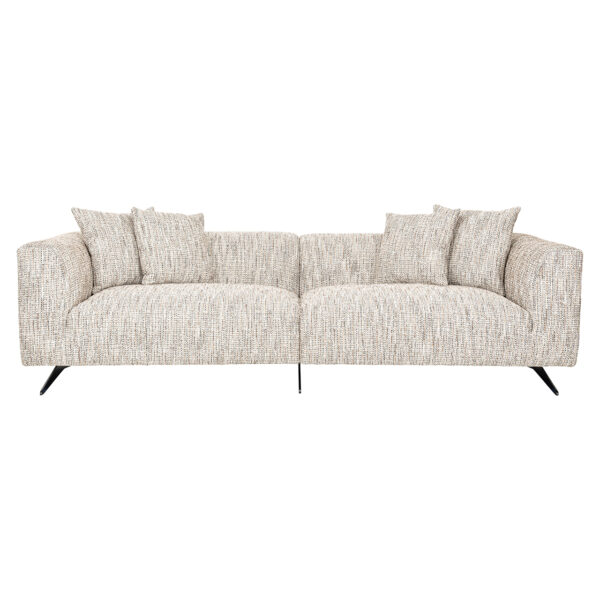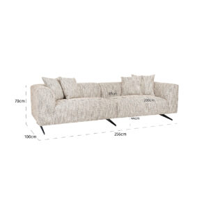 De Bank Hoxton 3-zits in Be Trendy 01 Nature is de perfecte combinatie van stijl en comfort. Met zijn royale afmetingen van 70 x 256 x 100 cm biedt deze bank voldoende ruimte om heerlijk te ontspannen. De elegante zwarte poten geven een modern accent, terwijl de zachte stof van 100% polyester zorgt voor een luxueuze uitstraling. De stevige constructie met metaal, multiplex, en dennenhout garandeert duurzaamheid. Deze bank is een blikvanger in elke woonkamer en biedt een uitnodigende plek om te relaxen. Kies voor de Hoxton-collectie en ervaar ultiem comfort en tijdloze elegantie in jouw interieur.