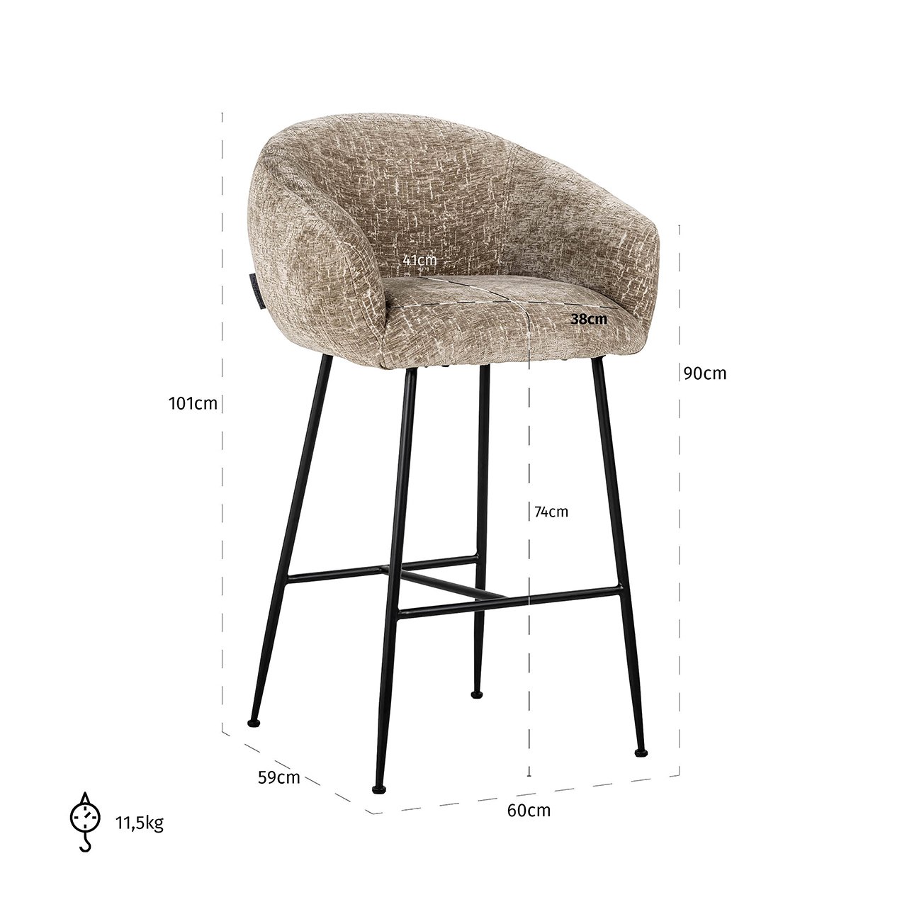 De Barstoel Avanti Shitake Island combineert stijl en comfort op meesterlijke wijze. Met een elegante afwerking in Shitake Island 124 en stevige zwarte metalen poten, is deze barstoel een blikvanger in elke ruimte. De hoogwaardige constructie van 100% polyester en foam zorgt voor langdurig zitplezier. De royale afmetingen van 101 x 60 x 59 cm bieden optimale ondersteuning, terwijl het moderne design elke keuken of bar een verfijnde uitstraling geeft. Met de Barstoel Avanti creëer je een uitnodigende sfeer voor gezellige avonden en stijlvolle bijeenkomsten. Voeg een vleugje luxe toe aan je interieur met deze tijdloze stoel en ervaar zelf het verschil.