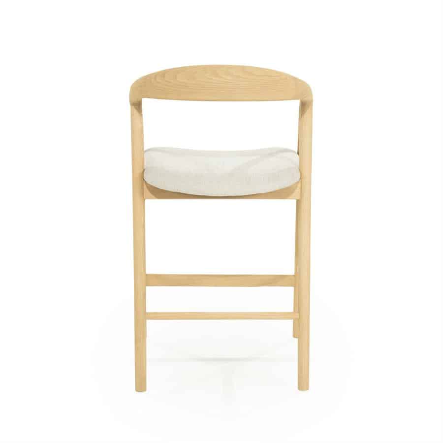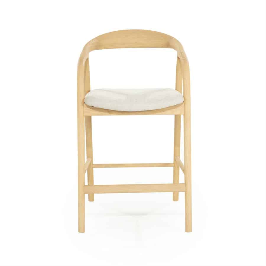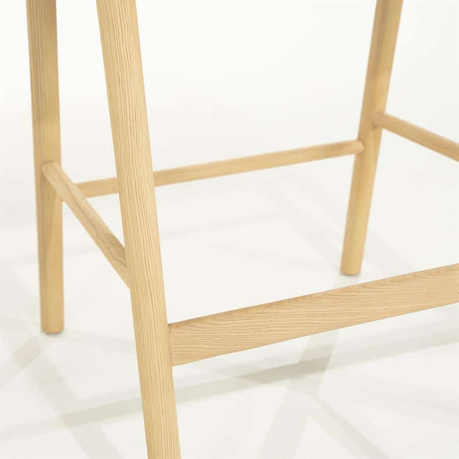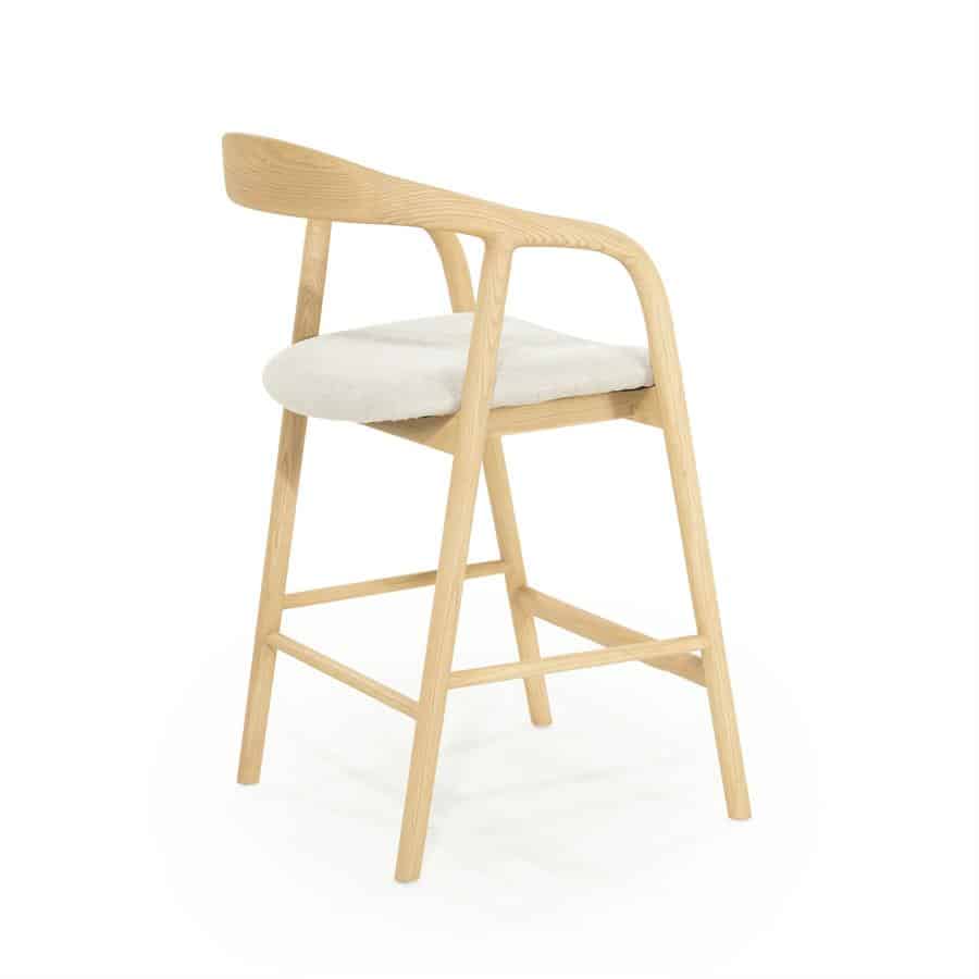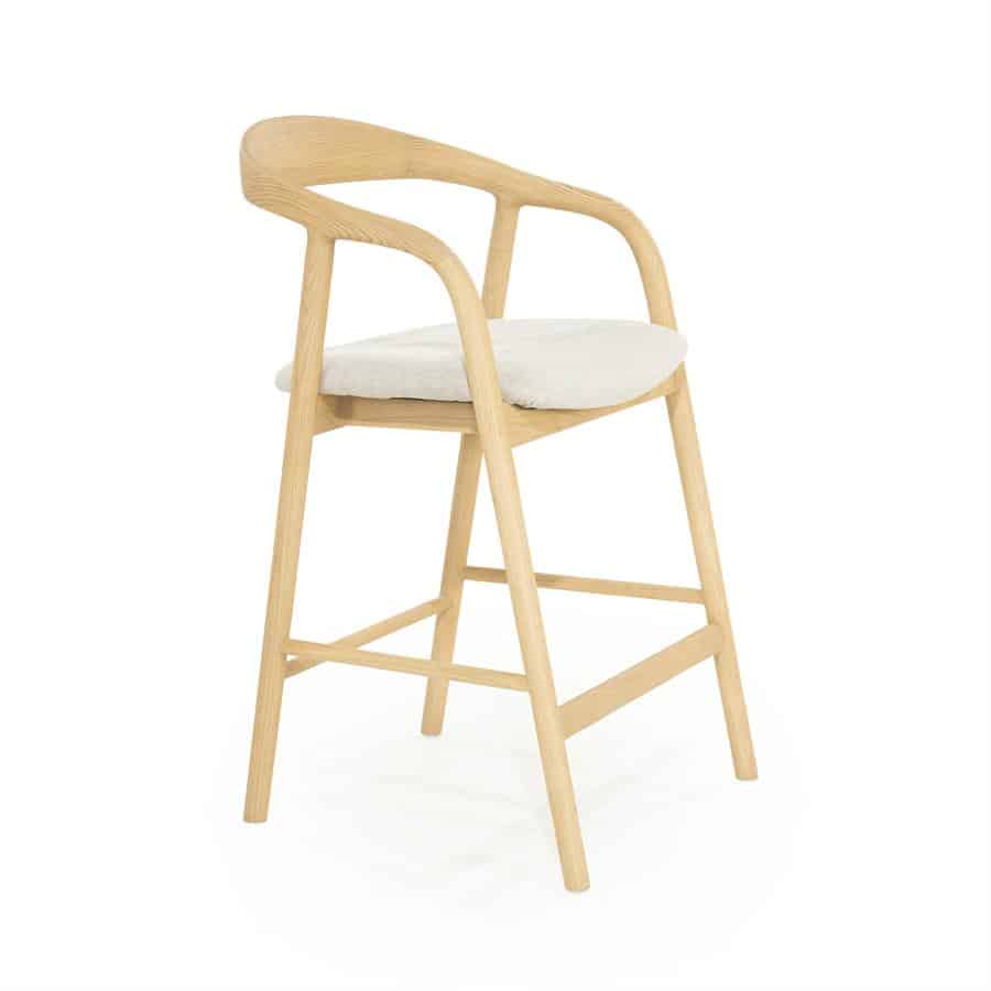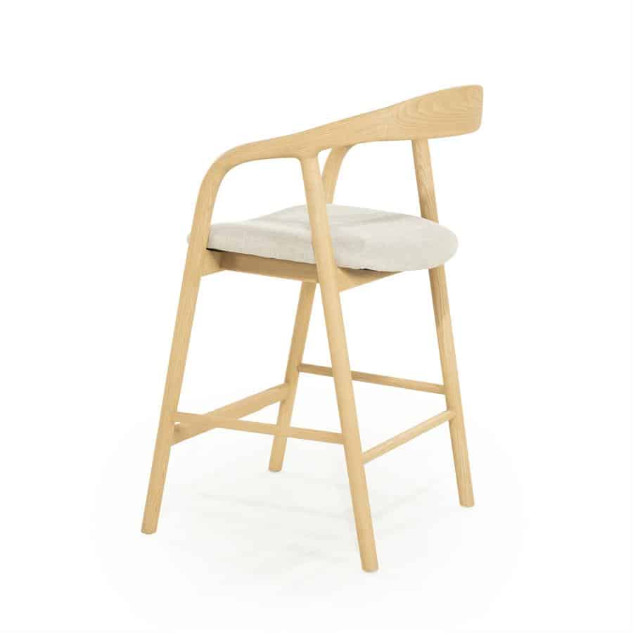 Deze barstoel is ideaal voor aan een kookeiland of hoge tafel, en combineert comfort met een lichte en toegankelijke uitstraling. De natuurlijke houttint maakt hem eenvoudig te combineren met verschillende interieurstijlen.
