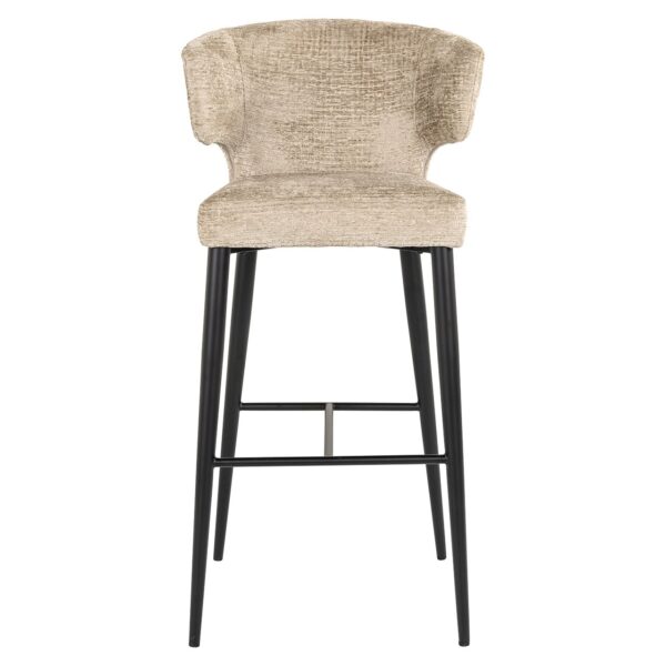 Ervaar ultiem comfort en stijl met de Barstoel Taylor in de elegante kleur desert fusion. Deze moderne barstoel, met zijn verfijnde zwart metalen poten, is een perfecte aanvulling voor elke ruimte. De hoogwaardige bekleding van 100% polyester en het brandvertragende materiaal garanderen duurzaamheid en veiligheid. Met afmetingen van 103 x 52 x 53 cm biedt deze stoel niet alleen een luxueuze zitervaring, maar ook een stijlvolle uitstraling. Of je nu je keukenbar of loungesetting wilt vernieuwen, de Barstoel Taylor voegt direct een vleugje verfijning toe. Kies voor kwaliteit en elegantie met deze unieke barstoel.