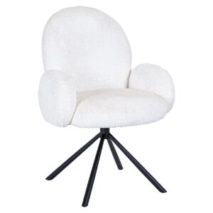 Ervaar ultiem comfort met de Draaistoel Jolie white sheep. Deze stijlvolle stoel uit onze collectie biedt niet alleen een moderne look met zijn zachte Sheep 02 white bekleding, maar ook ongeëvenaard zitgemak dankzij het PU foam T35. De zwarte ijzeren poten geven een elegante touch en zorgen voor stabiliteit. Met zijn afmetingen van 91,5 x 65,0 x 69,0 cm past hij perfect in iedere woonkamer of kantoorruimte. Laat je verrassen door de veelzijdigheid en het design van de Jolie draaistoel en maak van elk moment een luxe ervaring. Voeg een vleugje elegantie toe aan je interieur en geniet van de perfecte balans tussen stijl en functionaliteit.