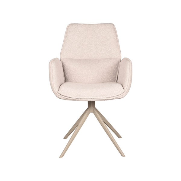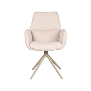 Eetkamerstoel Mellow van het merk LABEL51 is de perfecte combinatie van comfort en moderne elegantie. Deze stoel, bekleed met Naturel Touch, is voorzien van een unieke Taupe kleurige poot. De stoel heeft een unieke armleuning en een kenmerkende zwarte metalen draaivoet, wat zorgt voor een stijlvolle twist in elke eetkamer.