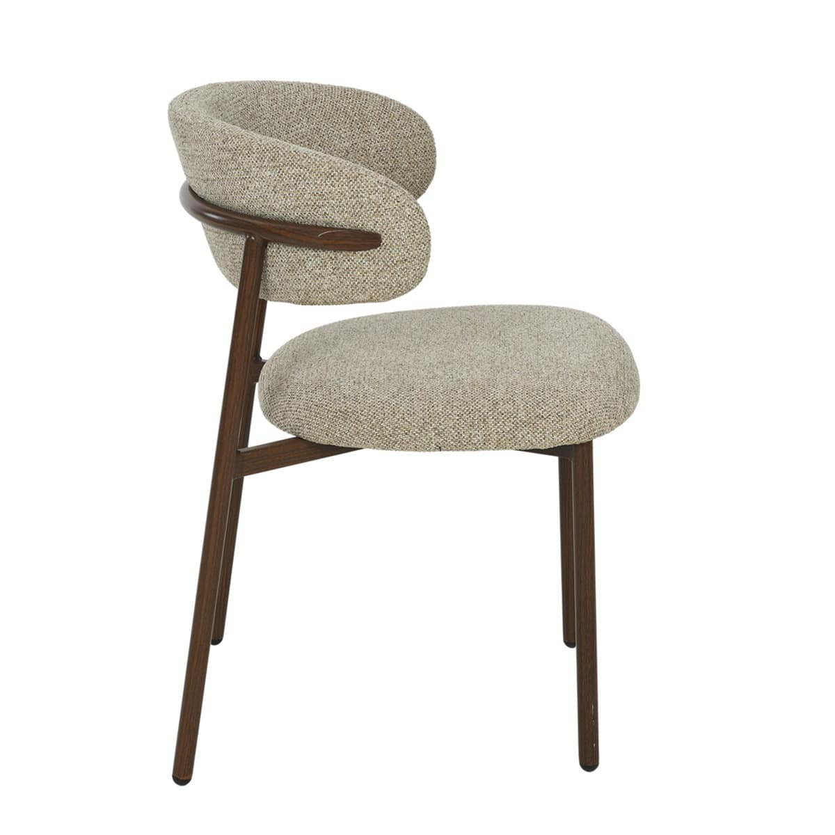 De Micah eetkamerstoel brengt moeiteloos elegantie en comfort samen. De afgeronde rugleuning biedt een prettige ondersteuning, terwijl het comfortabele zitvlak uitnodigt tot urenlang tafelen. De vaste zitting zorgt voor stabiliteit, en dankzij het tijdloze ontwerp past Micah in zowel moderne als klassieke interieurs. De slanke metalen poten in een rijke walnoot finish geven de stoel een warme, verfijnde uitstraling die perfect combineert met diverse tafelstijlen. Of je nu een diner organiseert of geniet van je ochtendkoffie – met Micah zit je altijd goed.