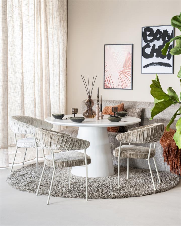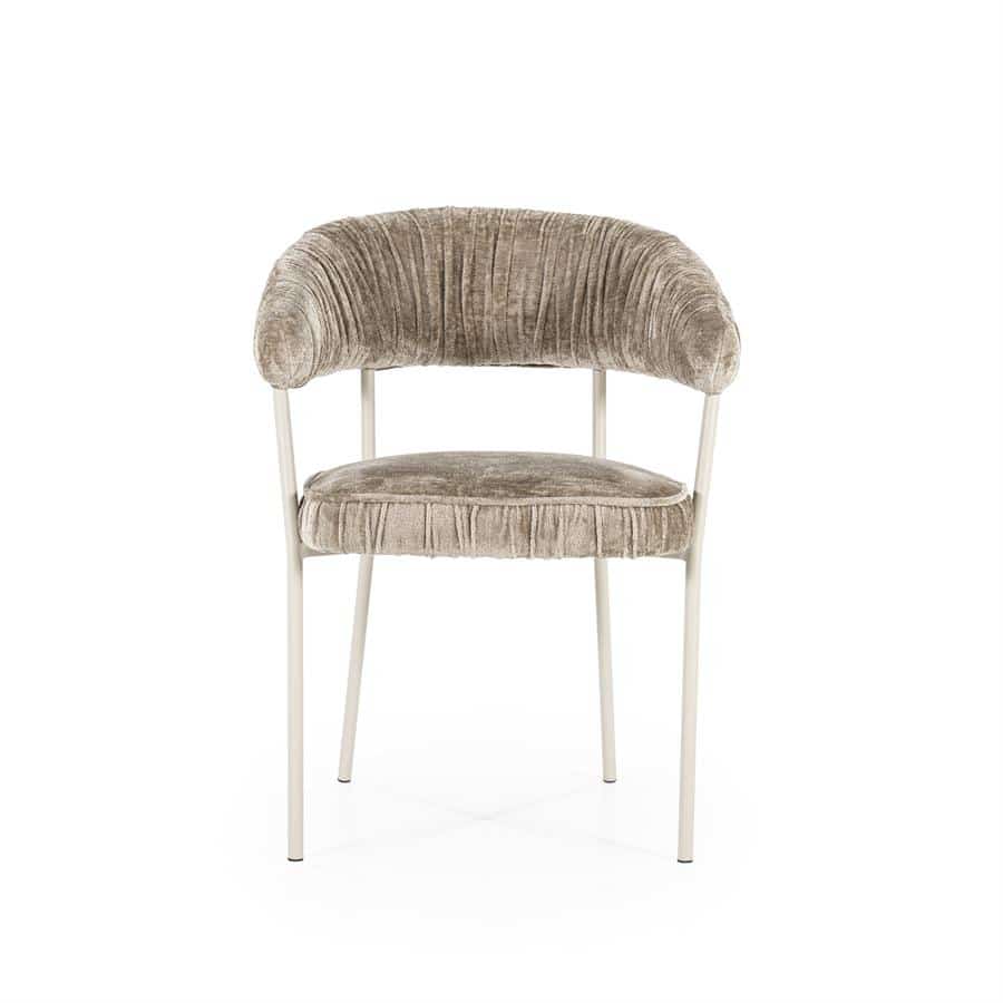 Ervaar ultiem comfort en stijl met Stoel Lizzy – taupe Femme. Deze elegante stoel combineert een zachte stoffen bekleding met een stevig metalen frame, afgewerkt in een verfijnde taupe tint. Met afmetingen van 59×60,5×79 cm en een zithoogte van 48 cm, is deze stoel perfect voor elke eetkamer of kantoorruimte. De luxe stof Femme voelt heerlijk aan en biedt een uitnodigende zitervaring. Het gecoate metalen onderstel zorgt voor stabiliteit en duurzaamheid, terwijl het moderne ontwerp een vleugje verfijning toevoegt aan je interieur. Voeg tijdloze elegantie toe aan je ruimte met Stoel Lizzy – taupe Femme en geniet van stijlvol en comfortabel zitten.