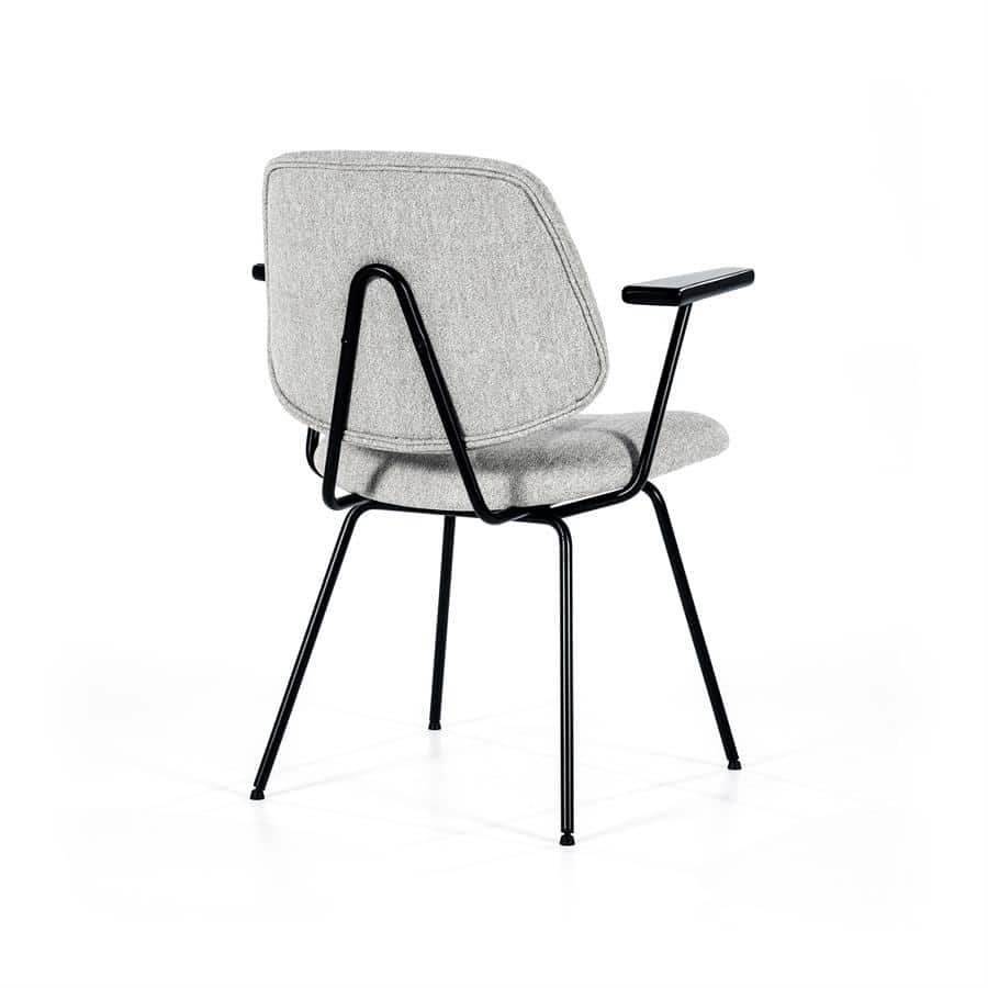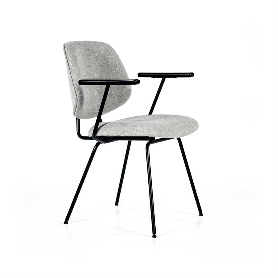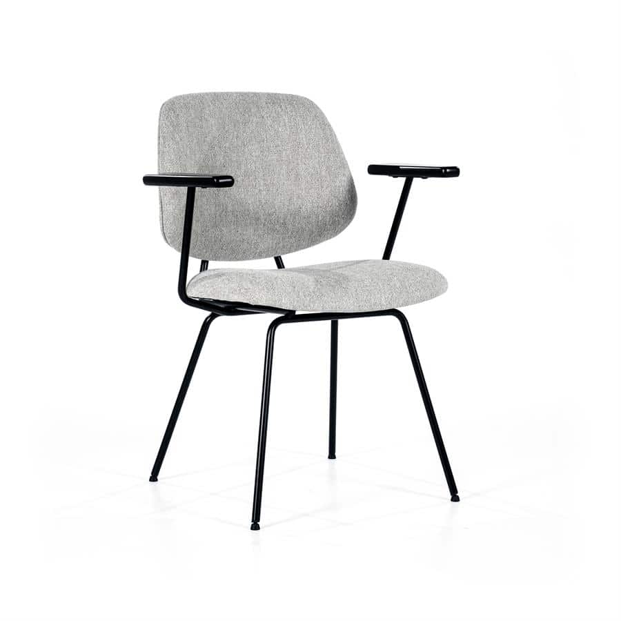 De Stoel Lynn met armleuning in grijs fletcher combineert stijlvolle eenvoud met ultiem comfort. Het robuuste metalen frame is gecoat voor een moderne uitstraling, terwijl de zachte stof zorgt voor een luxueuze zitervaring. Met een gewicht van slechts 7,6 kg is deze stoel eenvoudig te verplaatsen, perfect voor diverse ruimtes in huis. Dankzij de ideale hoogte van de zit- en armleuningen biedt de Stoel Lynn optimaal comfort tijdens lange diners of werksessies. Laat je interieur stralen met de tijdloze elegantie van deze stoel uit de Zitmeubelen NL serie. Voeg de perfecte finishing touch toe aan je eetkamer of kantoor en ervaar dagelijks het verschil.