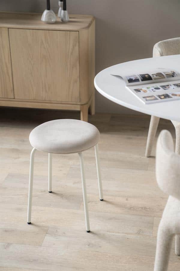 Ontdek de veelzijdigheid van de Stool Skola in taupe. Met zijn compacte afmetingen van 37x37x48 cm is hij perfect voor elke ruimte. De zitting van stof biedt comfort, terwijl het metalen frame met gecoate afwerking zorgt voor een moderne uitstraling. Met een draagcapaciteit tot 150 kg is deze kruk zowel stijlvol als robuust. Zijn subtiele taupe kleur past moeiteloos in elk interieur. Regelmatig stofzuigen houdt hem in topconditie. Voeg de Stool Skola toe aan je IND-collectie en ervaar het ideale samenspel van vorm en functie.